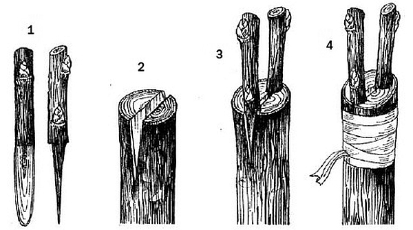 Этот способ спасает, когда нужно привить тонкий черенок на более толстую ветку или пенек (например, для омоложения дерева).